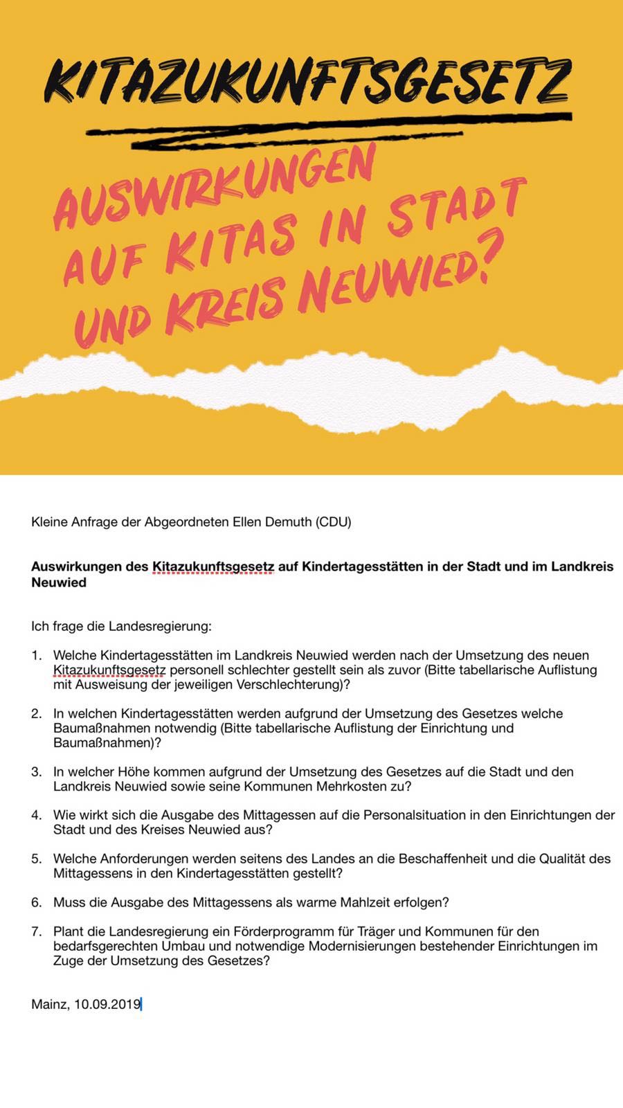 Ellen Demuth fragt nach: Auswirkungen des Kitazukunftsgesetzes auf Kindertagesstätten im Kreis Neuwied