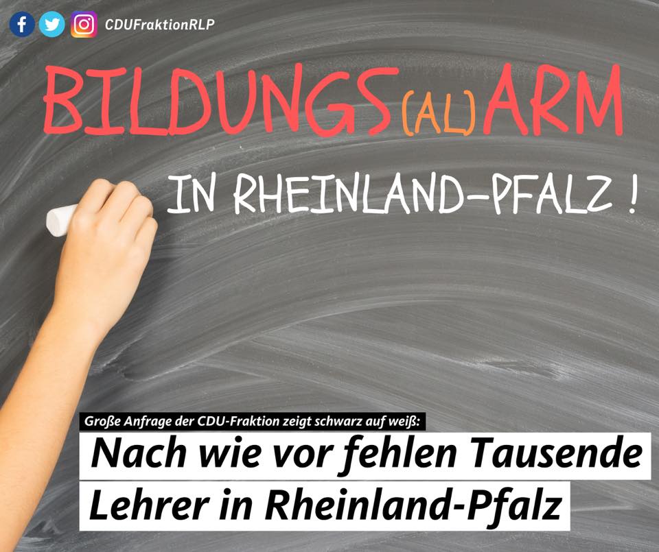 Die Landtagsabgeordnete Ellen Demuth ist besorgt über die aktuellen Zahlen des REB und stellt fest: „Ich unterstütze den Regionalelternbeirat (REB) Koblenz, wir brauchen nicht erst heute, und nicht nur an Grundschulen, deutlich mehr Lehrer.